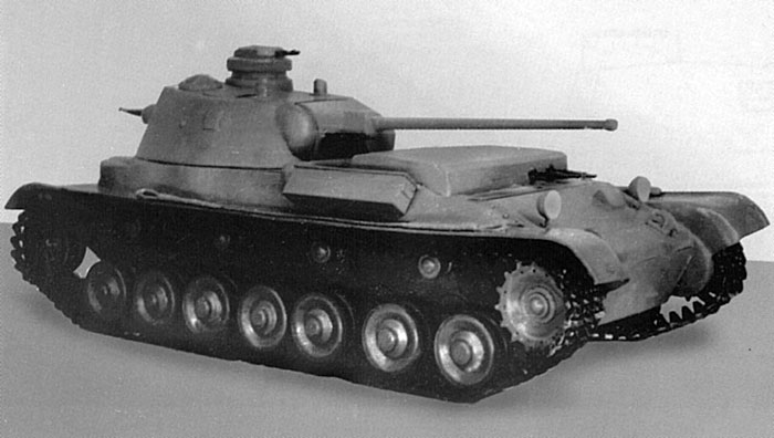 Второй проект – 90-мм лобовая броня, 75-мм бортовая, 35м-м крыша и днище. Масса – 40 т. Максимальная скорость – 59 км/ч. Запас хода – 270 км.